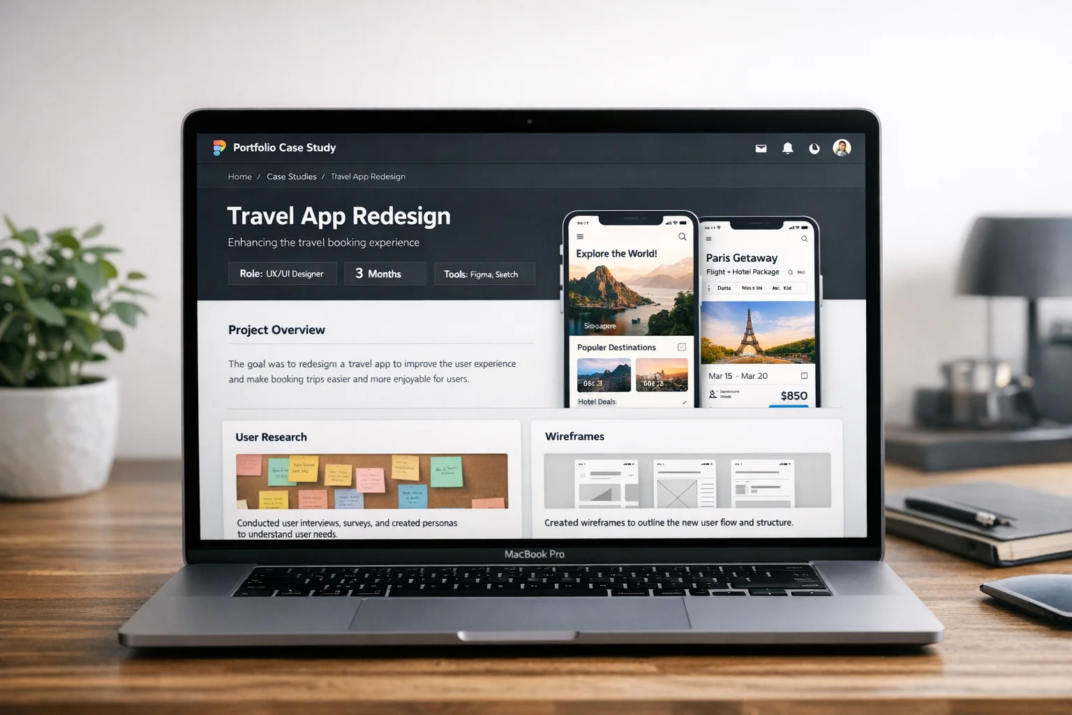 많은 프로젝트보다 하나의 깊은 케이스 스터디가 낫습니다. 리서치 → 분석 → 설계 → 검증의 전 과정이 담긴 케이스 스터디 하나가, 완성 화면만 있는 프로젝트 다섯 개보다 훨씬 강한 인상을 남깁니다.